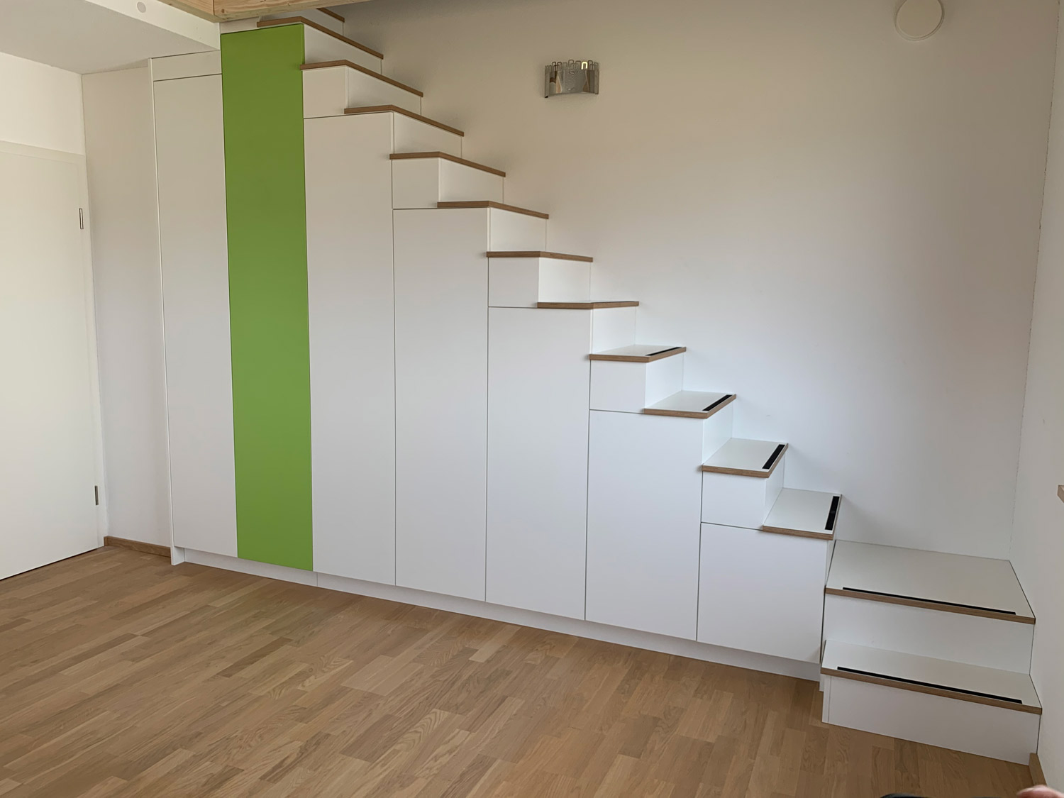 Böden und Treppen aus Vollholz, in furnierter Variante oder als Holzaufbau sind fester Bestandteil unserer Arbeit.